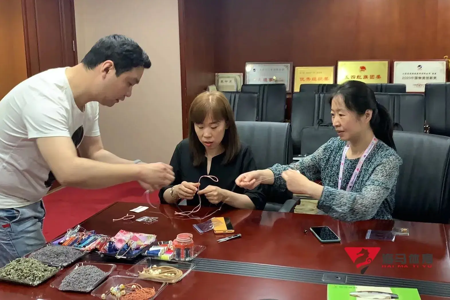 制作前,焦点娱乐的手工老师首先介绍了端午的习俗以及端午节制作香囊与五彩绳的来历,让大家在活动前了解端午的民俗文化,手工老师将精心准备的有着美好寓意的五色彩绳、色彩绚丽的香包袋以及清香的艾草薰衣草,送到职员手中,携手制作香包和五彩绳。